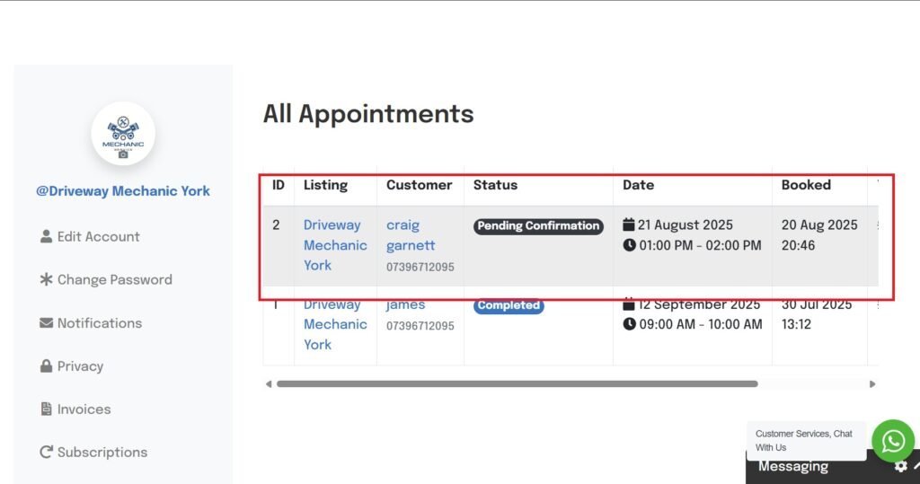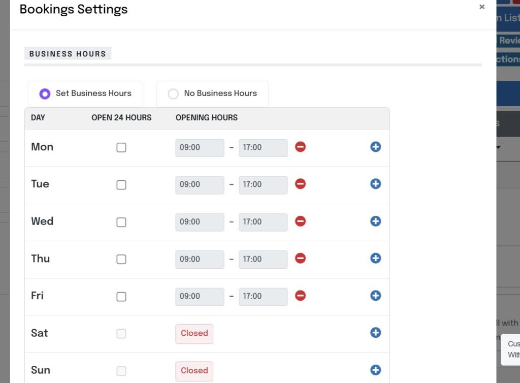 Set Business Hours – Adjust your workshop hours, these can differ from your listing hours, your in control, list whenever you want to take bookings.