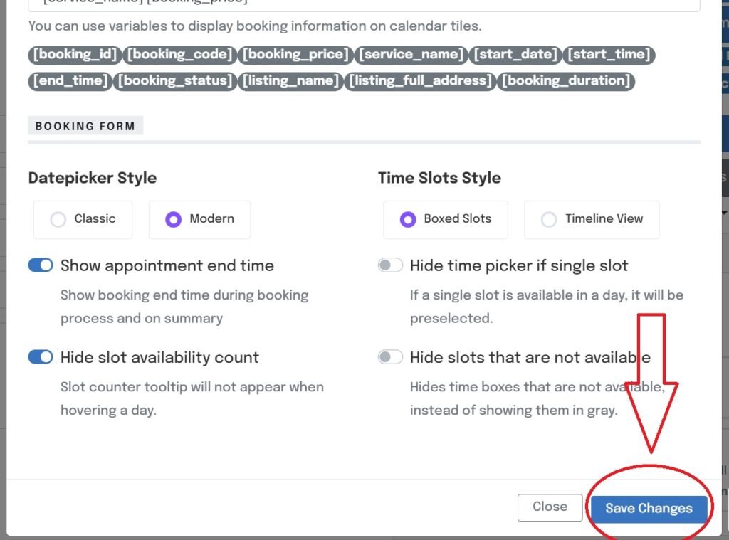 Booking Form – Adjust the 6 options below to suit your preference, you can always come back later and play around with different features.