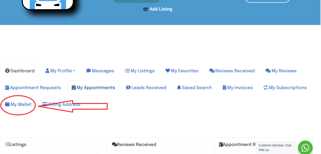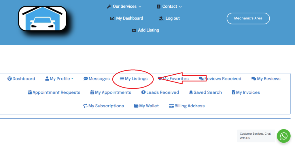 Once on your dashboard page select “My Listings” to access your available listings.